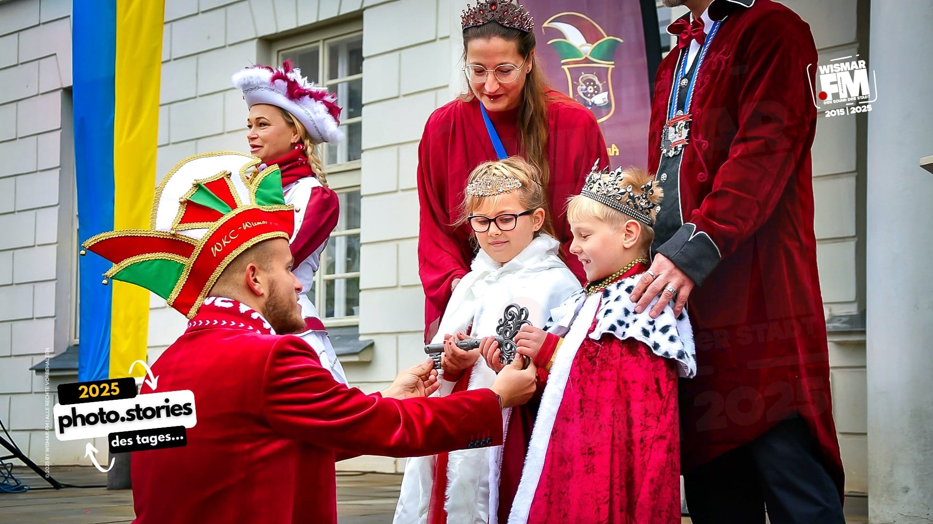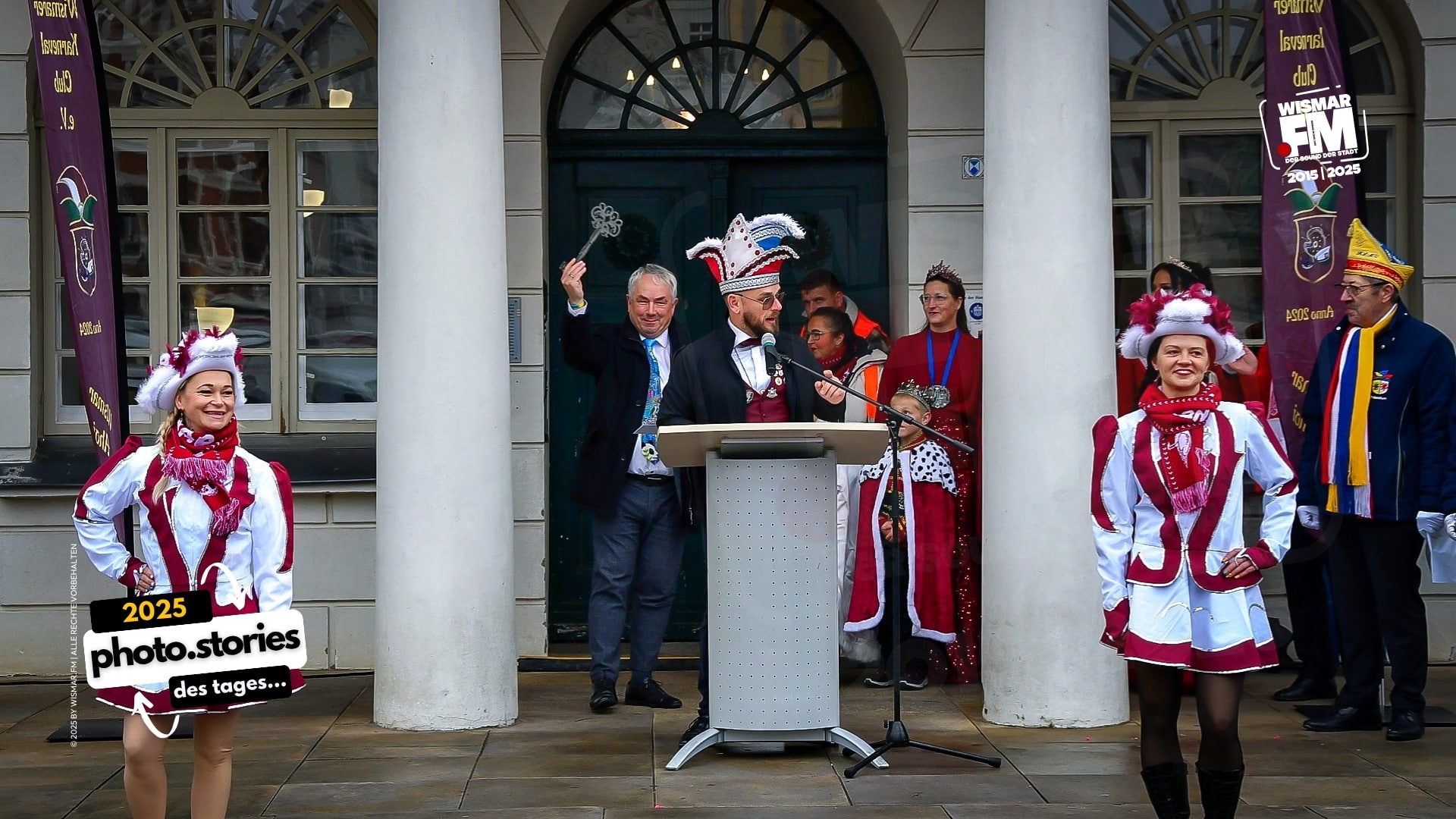 Pünktlich um 11:11 Uhr war es so weit: Die Narren übernahmen das Kommando in Wismar. Beim traditionellen Rathaussturm am 11. November 2025 forderten die Prinzenpaare mit lautem Jubel den Stadtschlüssel – und Bürgermeister sowie Ehrengäste übergaben ihn lachend und freiwillig.