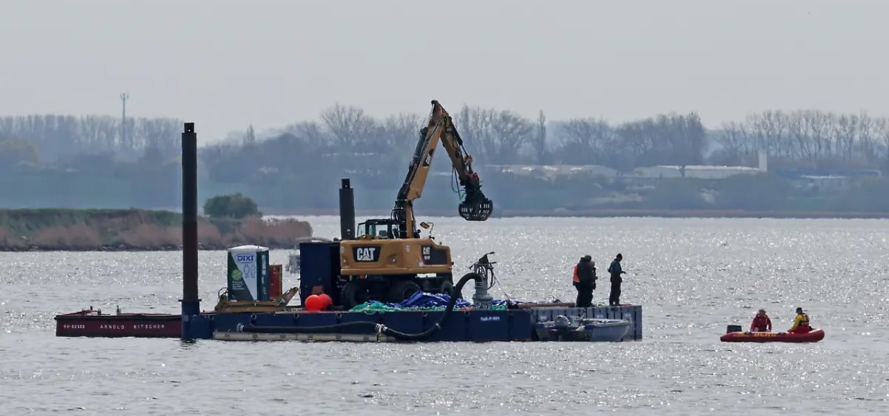 Eigentlich wollten die Helfer ab 9.00 Uhr die Ponton‑Konstruktion zusammensetzen oder das Netz in Position bringen. Doch im Livestream war zunächst nur der Baggerfahrer aktiv, der weiter Schlamm aus der Fahrrinne hob. Nach Informationen vor Ort ist der Untergrund härter als erwartet. Deshalb wird zunächst weiter gebaggert, bevor das Netz dem Wal präsentiert werden kann.
