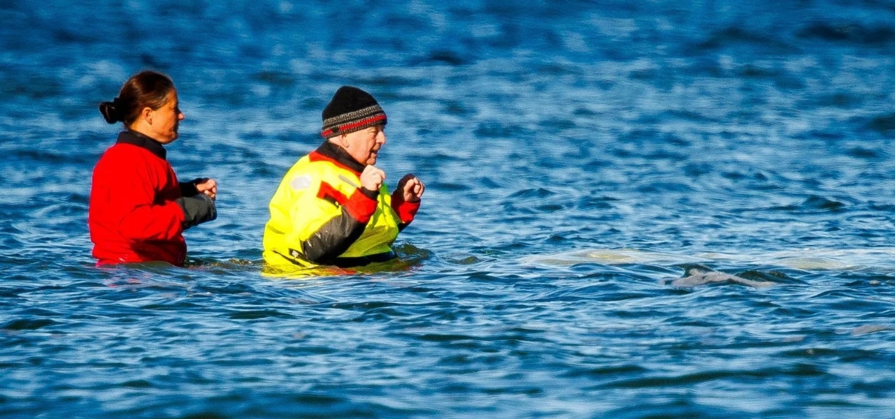 Helfer im Einsatz am Wal